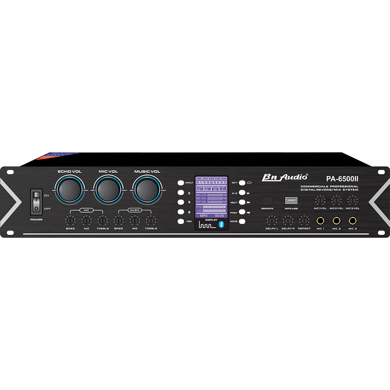 Amply liền vang BN AUDIO PA-6500 II hỗ trợ Bluetooth, Remote, chống hú, cổng Coxial và có cổng Quang Optical in là sản phẩm mới nhất của hãng BN Audio vừa nhập về Việt Nam, đáp ứng đủ nhu cầu Karaoke, nâng công nghệ ca hát lên một tầm mới, Amply phát hay hơn, mạnh hơn, Karaoke mềm mại, hát nhẹ nhàng, sáng tiếng hơn so với các đời trước âm thanh không bao giờ đạt được.